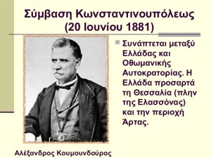 Τελικά, στις 12 Μαΐου 1881, οι αντιπρόσωποι των Δυνάμεων και της Υψηλής Πύλης υπέγραψαν τη σύμβαση στην Κωνσταντινούπολη. Στις 20 Ιουνίου ο Πρεσβευτής της Ελλάδας Ανδρέας Κουντουριώτης και ο Πρωθυπουργός της Τουρκίας Μαχμούτ Σερβέρ Πασάς υπέγραψαν το ίδιο κείμενο ως ελληνοτουρκική σύμβαση, σύμφωνα με την οποία παραχωρούνταν στο ελληνικό κράτος η Θεσσαλία εκτός της Ελασσόνας και η περιοχή της Άρτας. Αντί για τον Καλαμά, η γραμμή είχε τραβηχτεί πάνω στον Άραχθο, πολύ πιο νότια από το αρχικό σημείο.