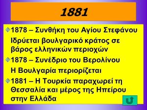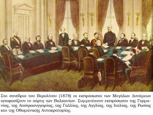 Όμως πολλά εύφορα εδάφη, όπως αυτά της Θεσσαλίας και της Μακεδονίας έμεναν εκτός του εθνικού κορμού. Το 1878 τελειώνει ένας ακόμη ρωσοτουρκικός πόλεμος με νίκη των Ρώσων. Στο Συνέδριο του Βερολίνου που συγκλήθηκε από τον Γερμανό καγκελάριο Βίσμαρκ, στην ομώνυμη πόλη, το 1878, η Ελλάδα μέσω των αντιπροσώπων της, τον υπουργό των Εξωτερικών Θεόδωρο Δηλιγιάννη και τον Aλέξανδρο Pίζο Pαγκαβή, ζήτησε από τις Δυνάμεις την παραχώρηση της Θεσσαλίας, της Ηπείρου και της Κρήτης.