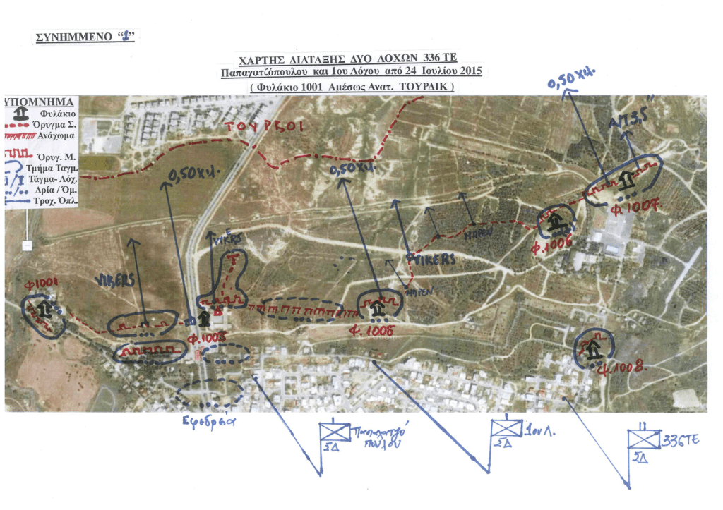 Ο κίνδυνος υπερκέρασης από το αριστερόν του 336 ΤΕ είναι ορατός (κατεύθυνση οδού ΓΡΙΒΑ-ΔΙΓΕΝΗ) ενώ σημειούται κίνηση 3 τουρκικών αρμάτων στην ιδίαν κατεύθυνση.