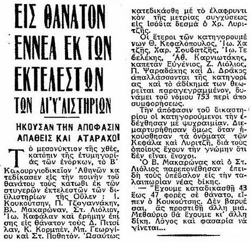 Άλλα παλληκάρια, όπως ο Τζογανάκης και ο Μακαρώνας, τους έδιναν κάμποσες μαχαιριές στην καρδιά και κατόπιν ερχόταν αλλουνού η σειρά. Όταν κουραζόμουν, έπαιρνε άλλος τη θέση μου…»