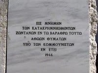 Αυτός είναι ο φρικαλέος κομμουνισμός και οι ντόπιοι προσήλυτοι του είναι οι χειρότεροι εγκληματίες που γνώρισε η Ανθρωπότητα. Και μαζί τους όλοι οι προσκυνημένοι που αποσιώπησαν αυτές τις φρικαλεότητες. Η κατάρα των αθώων θυμάτων που ποτέ δεν βρήκαν δικαίωση, δαιμονίζει την Ελλάδα και την οδηγεί αργά στον αφανισμό. Η Ελληνική Εκκλησία δεν τόλμησε να ορίσει Ημέρα Μνήμης των θυμάτων του ντόπιου κομμουνισμού, ώστε να ανάβουμε ένα κερί για τους αμέτρητους μάρτυρες της αντίχριστης και ανθελληνικής συμμορίας. Κάντε το εσείς. Όταν ανάβετε ένα κερί για τους νεκρούς σας, ανάψτε κι ένα για τα θύματα των ντόπιων αντίχριστων. Και παρακαλέστε τον Θεό να πάρει τις ψυχές τους δίπλα Του και να ρίξει στην Κόλαση τους δολοφόνους κομμουνιστές.