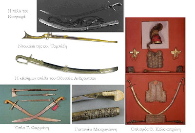 Δεν μπορούσε εκείνη την εποχή να νοηθεί η φορεσιά χωρίς τα άρματα. Ήταν αναπόσπαστο μέρος. Γυμνοί και κουρελήδες πολλοί, μα χωρίς άρματα κανείς. Φλωροκαπνισμένα, ασημοστόλιστα, σκαλιστά και σαββατλίδικα. Δεν είχε σημασία αν κάποιος ήταν πλούσιος ή φτωχός, καπετάνιος ή παληκάρι το μεράκι για τα άρματα ήταν το ίδιο. Τις περισσότερες φορές τα άρματα δεν ήταν αγορασμένα, αλλά λάφυρα αρπαγμένα από το χέρι ή το κορμί του εχθρού.
