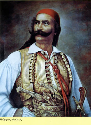 Πολλοί δε φορούσαν μαντηλοδεσιά, μα σκέτο μικρό κοφτό φέσι που στην κορυφή του είχε λίγη φούντα. Τέτοιο συνήθιζε πάντα ο Γκούρας και ο Κολοκοτρώνης. Την περικεφαλαία του ο Γέρος την είχε από τότε που ήταν μαγκιόρος(ταγματάρχης) του εγγλέζικου στρατού στα Επτάνησα το 1808 και την έβαζε στις επίσημες στιγμές της ζωής του, όπως και το θώρακά του. Άλλοι φορούσαν μεγάλο τουρλωτό κόκκινο φέσι όπως ο Καραϊσκάκης, οι Πετμεζάδες, κι η φούντα του ήταν μικρή και σ’ αυτό και στέκονταν στην κορφή. Μακριά φούντα όσο σχεδόν ολόκληρο το φέσι φορούσαν αργότερα στα χρόνια του Όθωνα κι ήταν παρμένη απ’ τους Σουλιώτες που τόσο τη συνήθιζαν.