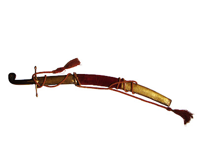 Απ’ το αριστερό μέρος του κορμιού τους, από μεταξόπλεχτη λουρίδα, κρεμόντανε η αστραφτερή και καμπυλωτή πάλα. Η λαβή της πάντα έμοιαζε με κεφάλι άγριου δράκοντα, που πολλές φορές πολύτιμα πετράδια στόλιζαν τα μάτια του. Το θηκάρι ήταν όμορφα στολισμένο με ερπετά, λιοντάρια, αγριομερινά και η θήκη έκλεινε μοιάζοντας με ουρά δράκοντα. Σε επιδέξια χέρια ήταν από τα πιο φονικό όπλα. Με μια σπαθιά μπορούσαν να κόψουν από τον ώμο άνθρωπο στα δύο. Ξακουστή ήταν η τέχνη και η δύναμη του Γκούρα και του Νικηταρά στην πάλα.