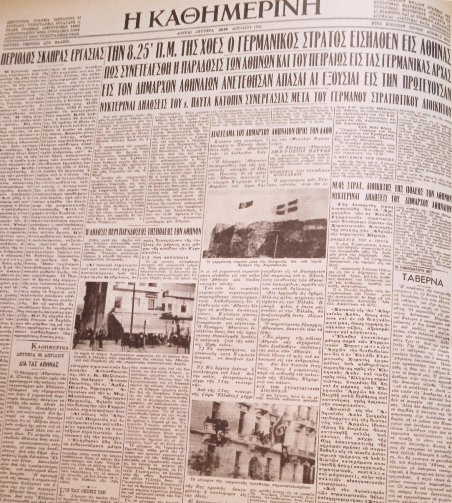 27 Απριλίου, τελευταίο ανακοινωθέν του Ραδιοφωνικού Σταθμού Αθηνών, από τον Κώστα Σταυρόπουλο την ώρα που τα γερμανικά στρατεύματα εισέρχονταν στην Αθήνα
