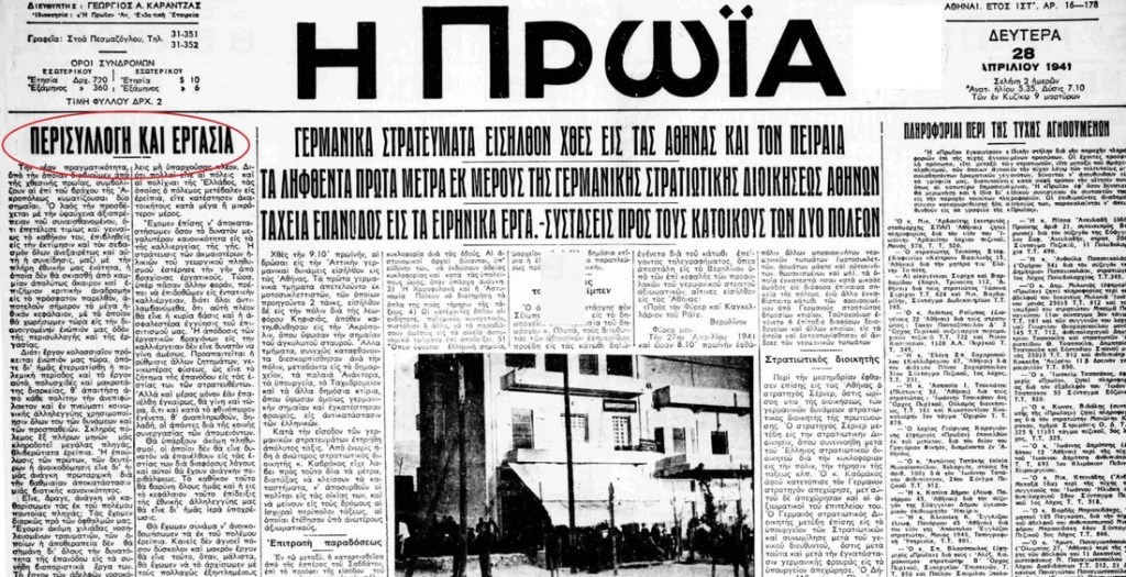 Στις 23 Απριλίου, τέσσερις μέρες πριν πέσει η Αθήνα στα χέρια των Γερμανών, έφυγαν από το Σκαραμαγκά για την Κρήτη ο βασιλιάς Γεώργιος Β’ με τον πρωθυπουργό Τσουδερό και μέλη της κυβέρνησης. Από το πρωινό της 27ης Απριλίου απλώνεται το σκοτάδι της κατοχής στην Ελλάδα που άφησε πίσω του χιλιάδες νεκρούς, ερείπια, οικονομική κατάρρευση, ήρωες,προδότες και προδομένους!