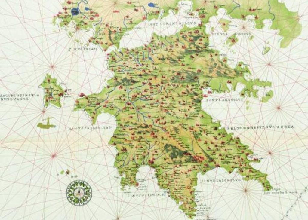 Με φύλλο αμπέλου παραβάλλει τη χερσόνησο ο Στέφανος Βυζάντιος (Εθνικών λ. Πελοπόννησος), όμως ο γεωγράφος του 1ου αιώνα π.Χ. Στράβων σημειώνει στα Γεωγραφικά του (H, 335) ότι η Πελοπόννησος “μοιάζει με φύλλο πλάτανου”, ενώ ο περιηγητής Διονύσιος από τον Xάρακα (Oικουμ. Περιήγ. 405) σημειώνει γύρω στο 300 μ.X., ότι μοιάζει με κουτσουρεμένο φύλλο πλάτανου (“ειδομένη πλατάνοιο μυουρίζοντι πετήλωι). Παρατηρώντας την κάτοψη της Πελοποννήσου από ψηλά, διαπιστώνεις ότι η δυτική πλευρά του πλατανόφυλλου εμφανίζεται πράγματι κουτσουρεμένη (Εικόνα).